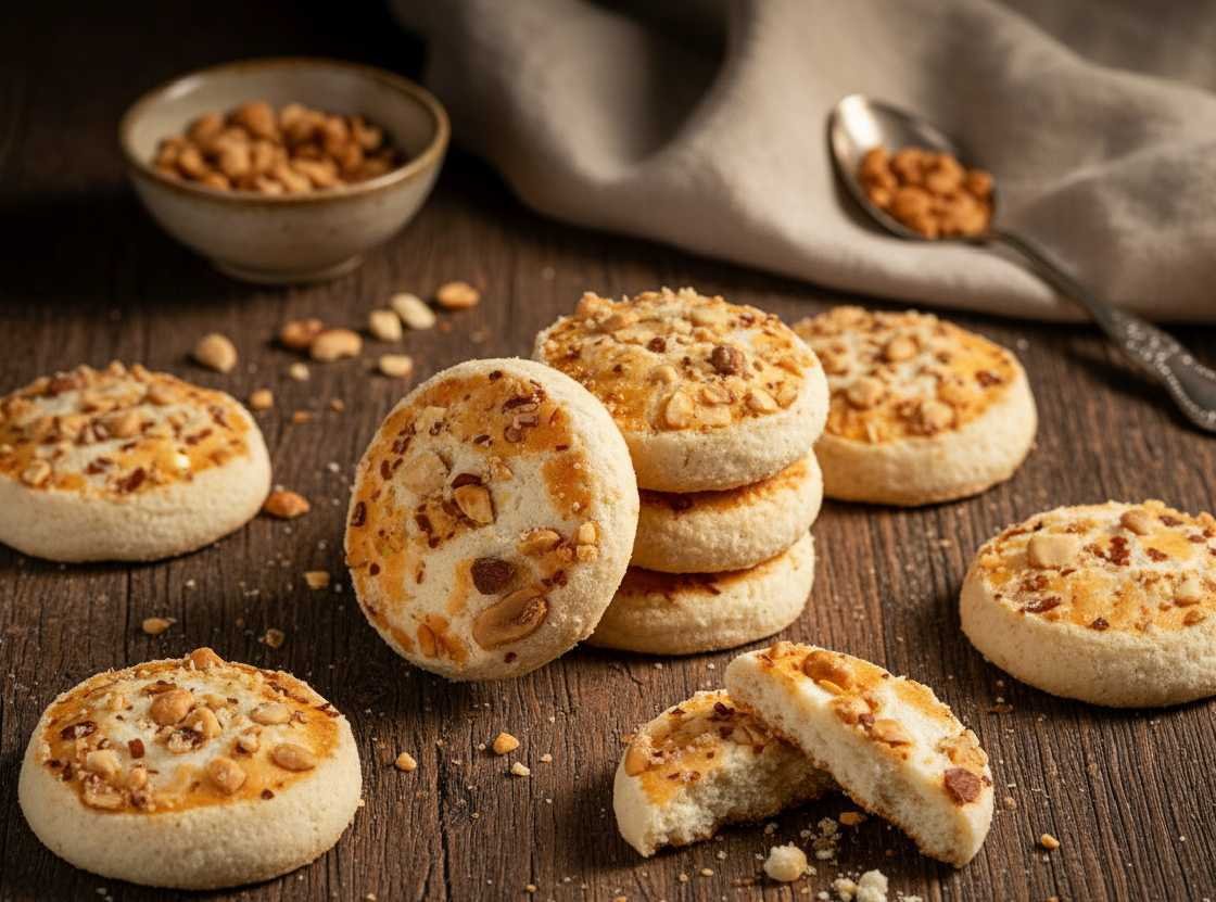 The classic Nankhatai recipe enriched with chopped peanuts (moongphali) for an extra layer of flavor and crunch. It combines the buttery richness of Khatai with the hearty goodness of nuts.