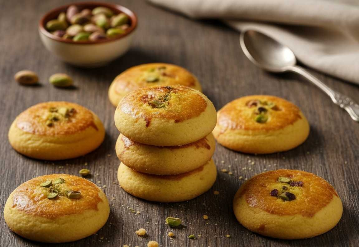 An elegant biscuit infused with the subtle, sweet flavor and color of pistachios (pista). The chopped pistachios provide a beautiful garnish and a delicate crunch to this light, aromatic treat.