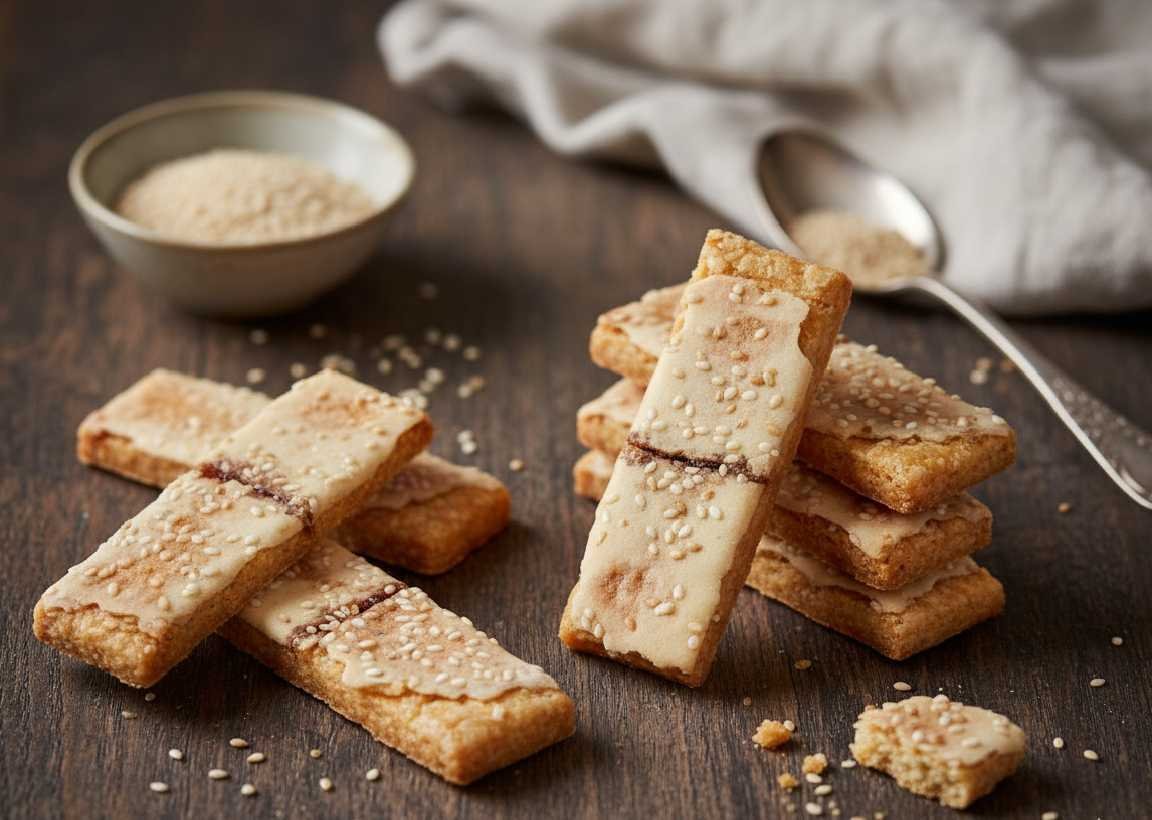 Crispy, light layers of wafer sandwiching a creamy filling and a layer of sweet, fruity jam. This treat is delightfully brittle and sweet, offering a satisfying crunch followed by a soft, sugary finish.